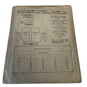 McCall Antique Early 1900's Pattern #5090 Ladies Underwear Set Size 38 HTF RARE