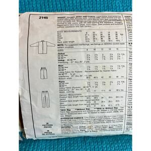 McCalls 2145 boxy blazer pants pencil skirt suit 1980s pattern sz 12