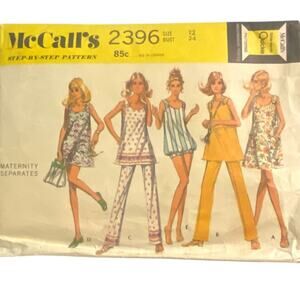 McCalls 2396 Pattern Dress Top Pant Short Miss 12 Maternity Bump Friendly Boho
