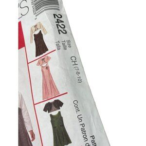 This McCall's 2422 sewing pattern includes templates for creating children's dresses with varying lengths and lined bolero jackets. Previously used yet in usable condition.