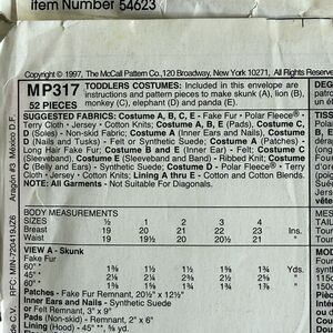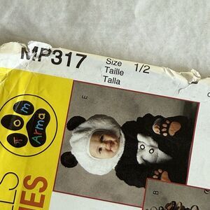 McCalls 317 Costumes Sewing Pattern Baby Lion Panda Elephant Skunk Sz 1/2 UC