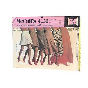 McCalls 4132 Misses Skirt Sewing Pattern Size Waist 28 Vintage 1974 uncut