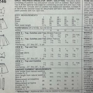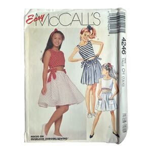 McCall's 4246 Girls Two Piece Dress (Top, Skirt, Culottes) Pattern - Size 7-8-10