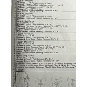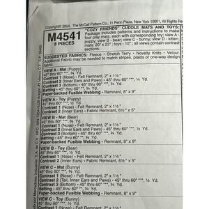 McCalls 4541 pattern plush puppy bear bunny kitten cuddle mat