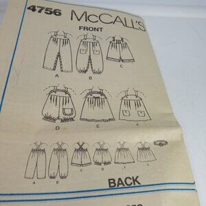 McCalls 4756 EASY Clothing Patterns (complete) Overalls, Sundress, Jumper