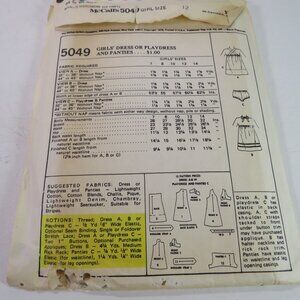 McCalls 5049 clothing pattern Kid size 12 EASY Dress, Panties (sleeveless)