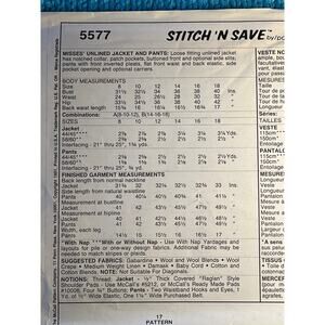 McCalls 5577 suit blazer boxy pants sewing pattern size 8 10 12
