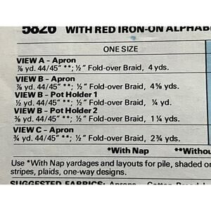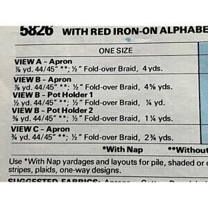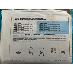 McCalls 5826 Pattern adult Apron work apron kitchen apron