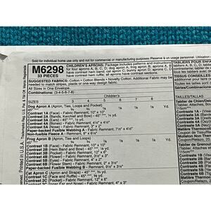 McCalls 6298 Sewing pattern Kids apron animal bunny dop frog cat