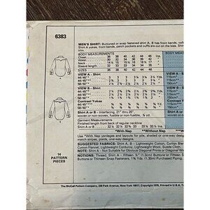 McCall's 6383 Pattern Vintage Unisex Western Shirt Size 42 UNCUT