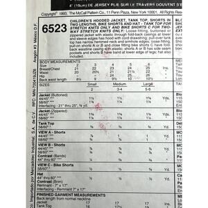 McCalls 6523 Sewing pattern Kids hoodie tank top shorts hat size small