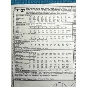 McCalls 7427 Sewing pattern Kids robe pajama top pant size 4 5 6