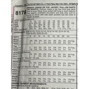 McCalls 8178 Sewing pattern Dress top pants shorts jacket size 20 22 24