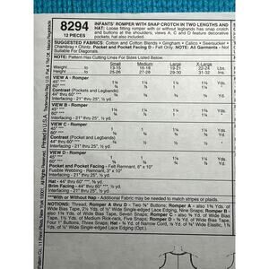 McCalls 8294 Sewing pattern romper with snap crotch
