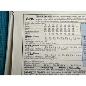 McCalls 8315 Sewing pattern blouse pleat front 1980s size 14