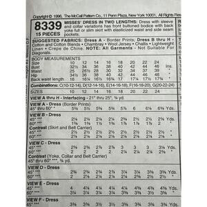 McCalls 8339 Sewing pattern shirt dress swing pencil skirt size 14 16 18