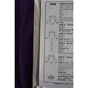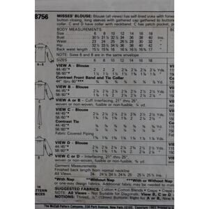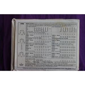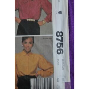 McCalls 8756 Sewing pattern blouse 1980s size 18