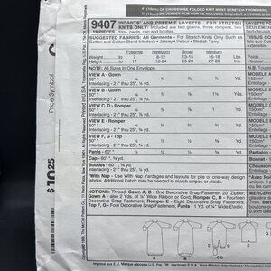 McCall's 9407 “Infants & Preemie Layette” Sewing Pattern in New Uncut Factory Folded Condition.