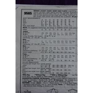 McCalls 9565 Sewing pattern suit blazer shirt skirt pants size 10
