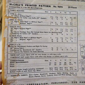 McCalls 9695 clothing pattern (complete) Boys slacks - pants, shirt, shorts