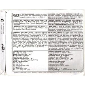 McCalls Crafts 2994 24 Inch Caroler Dolls Uncut Sewing Pattern