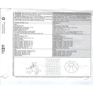 McCalls Crafts Pattern 3476 Bear Mini Quilt & Ball Sewing Design