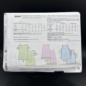 McCall's Easy 6687 Ginger & Louise “Children's/Girls' Dresses & Pinafores” Sewing Pattern in New Uncut Factory Folded Condition.
