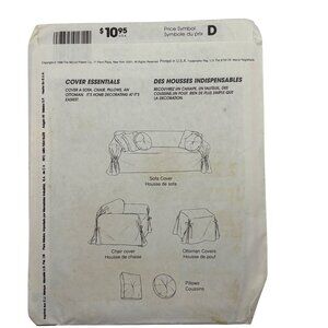 Pattern set includes instructions for creating sofa, chair, ottoman covers, and pillows. Ideal for giving furniture a refreshed look.