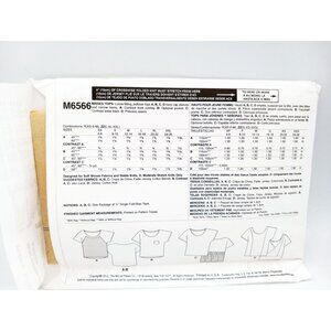 Uncut McCalls M6566 sewing pattern for a trendy, summer top with a loose fit and cap sleeves. Suitable for sizes XSM-M.