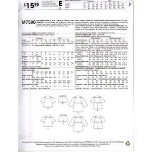 McCalls M7590 Girls 3 to 6 Top Shorts and Romper Uncut Sewing Pattern New