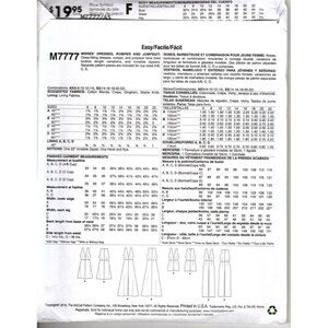 This McCall's M7777 pattern offers an uncut sewing template for a versatile jumpsuit, romper, and dress, suitable for sizes 14 to 22. Easy to follow, it's perfect for beginners and experienced sewers.