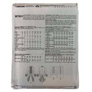 McCalls M7824 Mens Costume Sewing Pattern Outlander Red Coat Jacket & Vest 46-52 2018