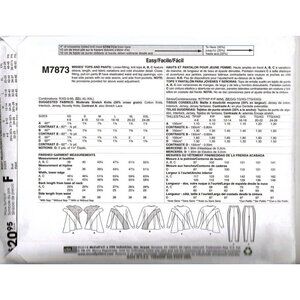 This sewing pattern from McCall's offers an array of stylish tops and pants designed for knit fabrics. With loose-fit garments and varying sleeve styles, this pattern is ideal for creating chic and comfortable wardrobe pieces. Included are detailed instructions for professional results, allowing you to craft versatile apparel for casual or semi-formal wear.