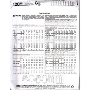 McCall's M7876 Misses 6 to 14 Pants and Jacket Uncut Sewing Pattern New