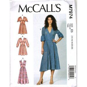 McCall's M7974 is a versatile, uncut sewing pattern for a button-front dress, ideal for sizes 14 to 22. This brand new pattern offers a unique style for any occasion.