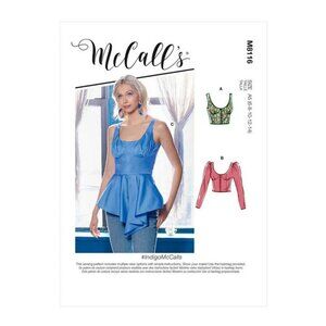 This McCall's M8116 sewing pattern is perfect for creating stylish peplum tops. Designed for sizes 6-14, this brand new, uncut pattern is printed on high-quality white paper.