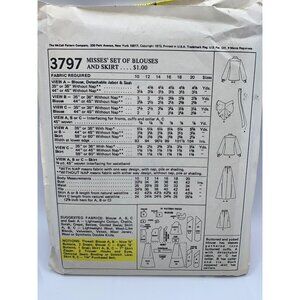 McCall's Misses Blouse Shirts Skirts Sewing Pattern sz 14 3797 - uncut