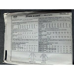 McCall's Misses Dress Sewing Pattern sz 8 10 12 14 2839 - uncut