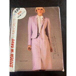 Vintage McCall's Misses Jacket Skirt Sewing Pattern 9110, uncut and sized 6-10, lets you create your own stylish women's outfit. Ideal for crafty fashion enthusiasts.