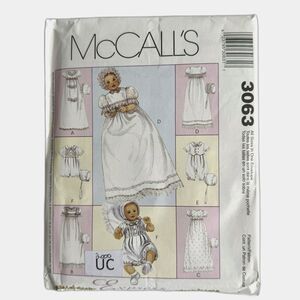McCalls Sewing Pattern 3063 Christening Baptismal Gowns Romper Bonnets UNCUT