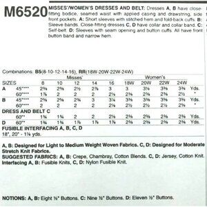 McCall's Sewing Pattern 6520 Misses Dress Belt
