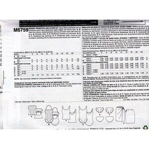 McCalls Sewing Pattern 6759 Swimwear Suits Once Piece Tankini Miss Sz 6-14