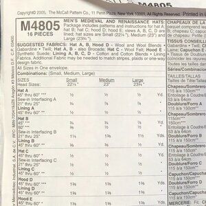 Vintage 2005 McCalls Sewing Pattern M4805 Medieval Renaissance Men S,M,L Hat Costume Theater. Pattern is CUT. Please see pictures for more detail. We also have other vintage patterns available.