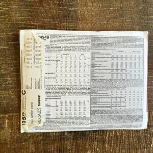 Back of Envelope shows corresponding bust, waist, hip, back sizes.