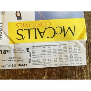 McCalls Sewing Pattern M6817 Scottish Princess Vampiress Costume Girls 3-8 UNCUT