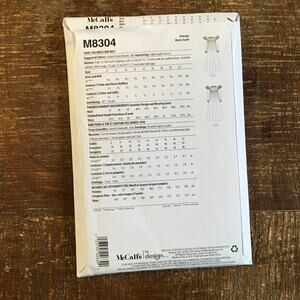 Back of Envelope shows corresponding bust, waist, hip sizes.