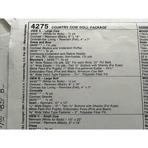 McCalls Sewing pattern 4275 plush cows sewing pattern