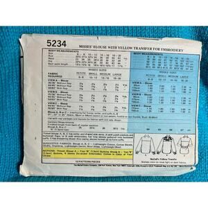 McCalls Sewing pattern 5234 blouse pullover top wingtip collar 1970s