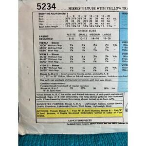 McCalls 5234 blouse pullover top wingtip collar 1970s