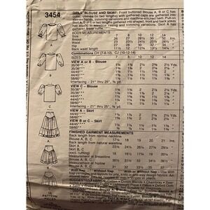 McCalls 3454 girls top peasant skirt sz 7 8 10